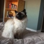 I will miss sweet Simon very much. He was always the kitty who accepted new kitties in the home first. Simon always loved butting his head into any idle hand he saw for petting. Simon spent many nights sleeping next to me snuggled up to my belly and near my face. Simon never complained. He was always grateful for whatever was given to him. Simon had the loudest purr of contentment. He was very social & loved being part of everything. I will miss my precious Simon peeking through the glass bedroom door waiting for me to get up in the morning to let him in while I got ready for work. Simon always loved to chew on shoestrings. His favorite toy was a squeaky mouse. I am grateful Simon and I crossed paths & we got to be part of each other's life for 14 years. I will miss my dear friend sweet Simon. Fly free my angel. May there be an endless supply of Greenies for you at the other side of the rainbow bridge. This is Simon's bio at the Boulder Valley Humane Society when I adopted him 14 years ago today. Simon (fka Barney) was only 9 weeks old at the time. "7/10/00. One of a feral litter of 4, Barney is truly a prince. He is the biggest of his litter, but he is the gentlest, kindest guy. Barney has a brother with only 3 legs, and though all the litter get along with the 3 legged kitten, Barney is somehow the kindest and seems like a loving, caring big brother. He takes extra time to play with Wilmer (3 legs) just the way Wilmer likes to play - no high climbing, jumping, chasing - just gentle batting at each other, and a good wrestling match. Never "grabby" about food, not particularly territorial, Barney is good natured and VERY affectionate and talkative. Has a good appetite, plays well with others, likes people, is used to gentle dogs. With his striking looks, great disposition, calm and gentlemanly manner, this is a real classy and intelligent cat." I always knew you were special Simon. I love you and will miss you until we meet again.