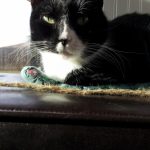 The circumstances under which Piglet came to live with me were rather unusual. It was a rainy night in Boulder and I was driving home from the gym, travelling north on 30th Street from Baseline. Out of the corner of my eye, I saw what I thought might be a small kitten huddled on the yellow line in the middle of the street. I turned around and drove in the other direction, but didn't see anthing that time. So, I turned around again and started heading home. Once again, the light was just right and I saw a small kitten hunkered down on the yellow line. I stopped my car, turned on my emergency flashers, ran into the middle of the street, scooped him up, and put him in the car.