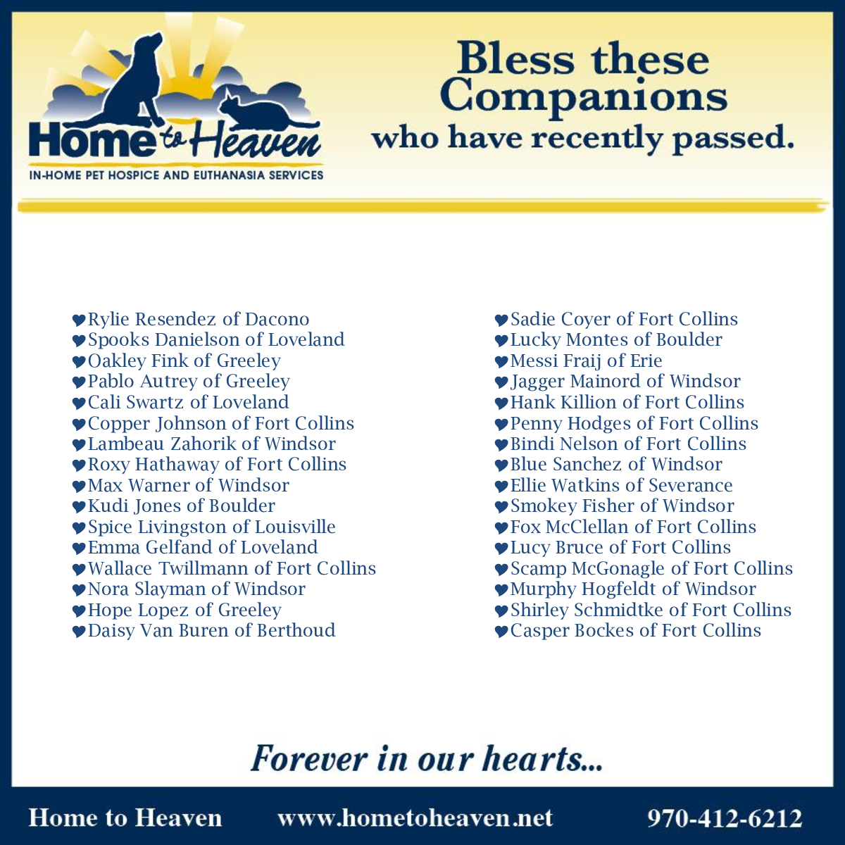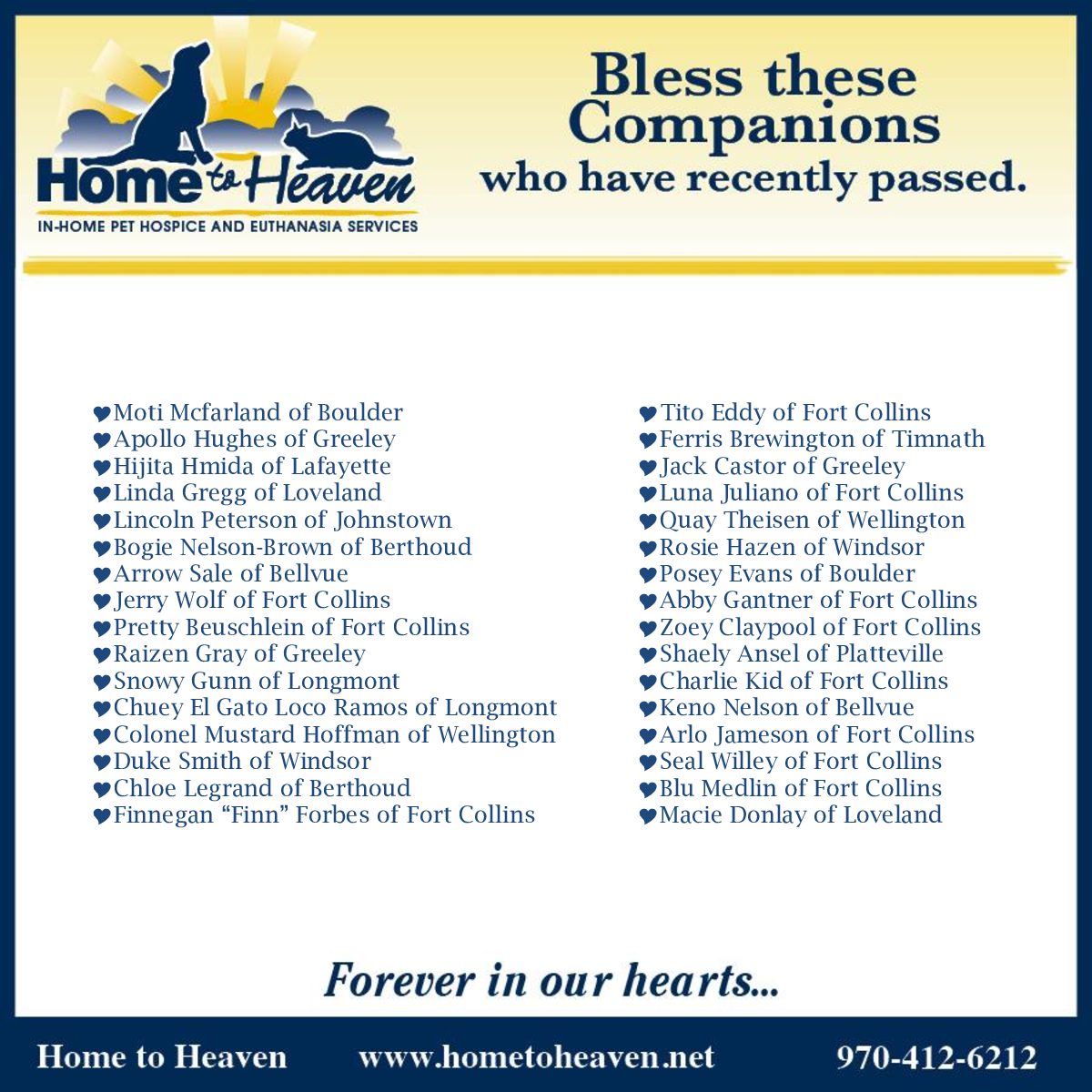 Home to Heaven took 1st place thanks to all of YOU! We’re honored to be part of this wonderful community and grateful to have served NOCO families for nearly two decades. Thank you for supporting our local, family-owned business and trusting us with your furry family members. ♥️🐾🌈